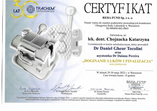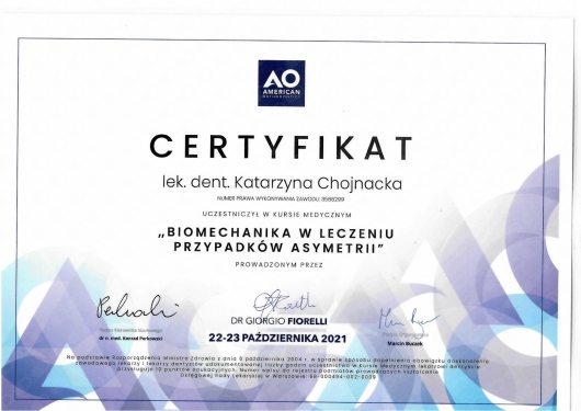 Uczestniczę w licznych kursach, szkoleniach i kongresach, by stale doskonalić umiejętności oraz móc leczyć pacjentów zgodnie z aktualną wiedzą i najwyższą starannością.