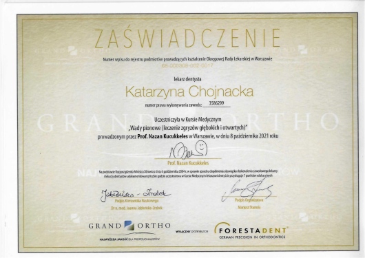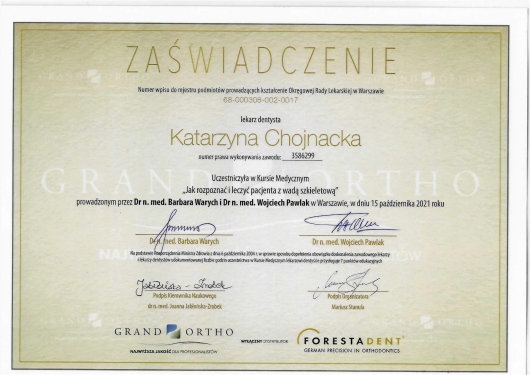 Jaki jest zakres porad oferowanych przez Katarzyna Chojnacka?Katarzyna Chojnacka to stomatolog, ortodonta. Na podstawie swojego doświadczenia i wykształcenia Katarzyna Chojnacka oferuje usługi takie jak: Konsultacja stomatologiczna, konsultacja ortodontyczna.