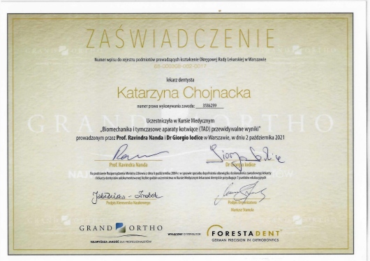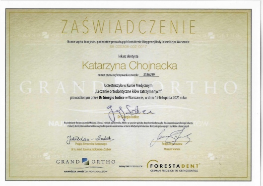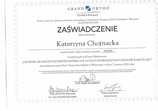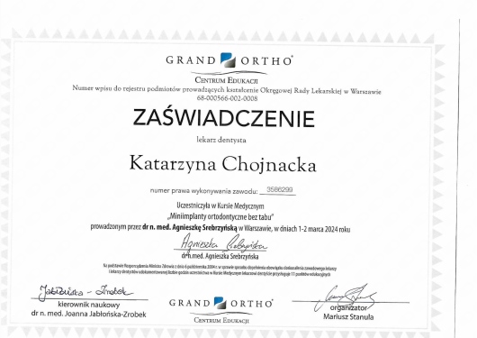 Posiadam również doświadczenie dydaktyczne - prowadziłam zajęcia ze studentami stomatologii III, IV i V roku z dziedziny ortodoncji.