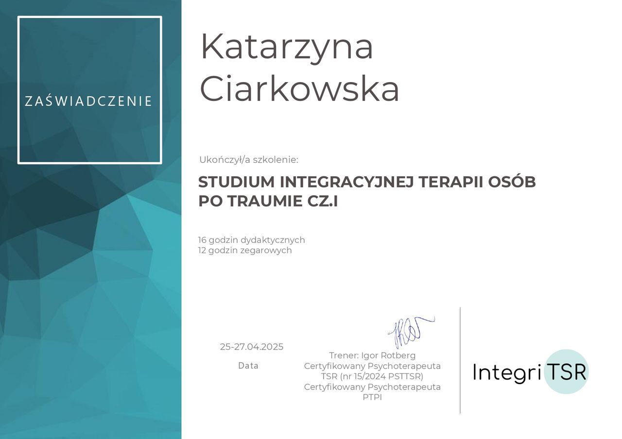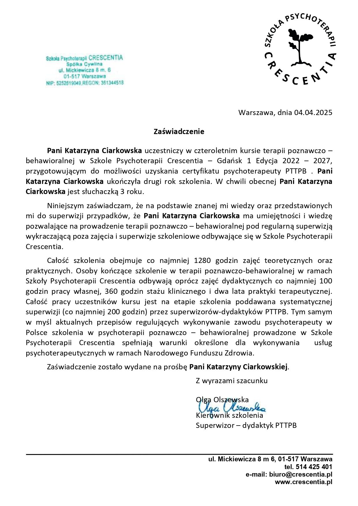 ***Ze względu na brak poczekalni w prywatnym gabinecie, proszę o punktualne przybycie. *** Bezpłatne odwołanie sesji 24h przed umówionym terminem. Odwołanie spotkania po tym czasie wiąże się z pokryciem kosztu odwołanej wizyty. ***Proszę o sprawdzenie dostępności sesji pod dwoma adresami: jeden dotyczy kalendarza w gabinecie prywatnym, drugi Poradni, z którą współpracuję. W przypadku braku dogodnych terminów w jednym miejscu, zachęcam do zapoznania się z dostępnością w drugim. ***Sesje online możliwe są w tych samych godzinach, w których kalendarz wskazuje sesje stacjonarne. ***Do zobaczenia...