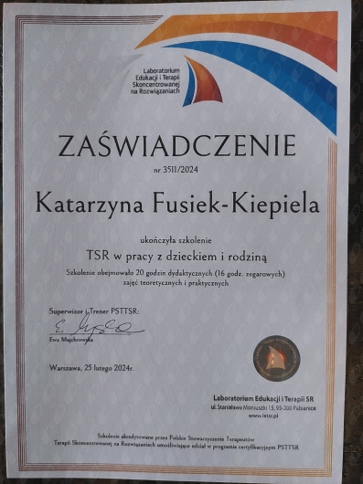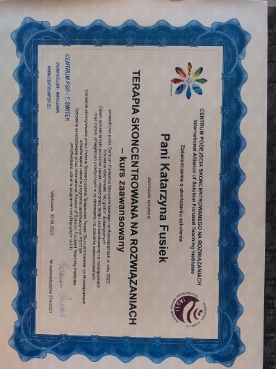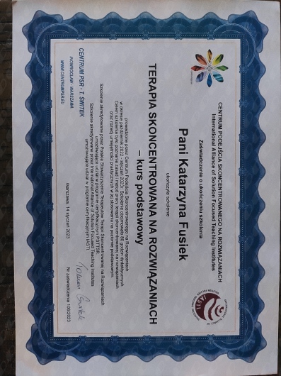 Jestem psycholożką-seksuolożką oraz trenerką. Udzielam wsparcia indywidualnego i grupowego. Pracuję w nurcie Terapii Skoncentrowanej na Rozwiązaniach. Aktualnie jestem uczestniczką pięcioletniego całościowego szkolenia psychoterapeutycznego ze szczególnym uwzględnieniem systemowej terapii rodzin prowadzonego przez Fundację Rozwoju Terapii Rodzin NA SZLAKU w Krakowie. Kurs posiada akredytację Sekcji Naukowej Psychoterapii i Sekcji Naukowej Terapii Rodzin Polskiego Towarzystwa Psychiatrycznego