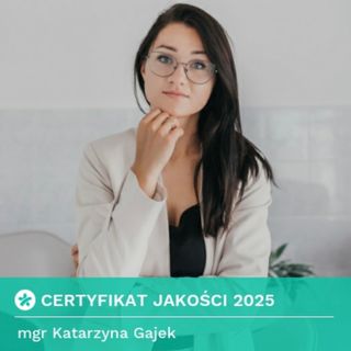 Czy Katarzyna Gajek przyjmuje online, bez konieczności pojawiania się w placówce?Tak, Katarzyna Gajek oferuje konsultacje online. Wybierz opcję „konsultacja online” przy umawianiu wizyty, a zobaczysz dostępne terminy.