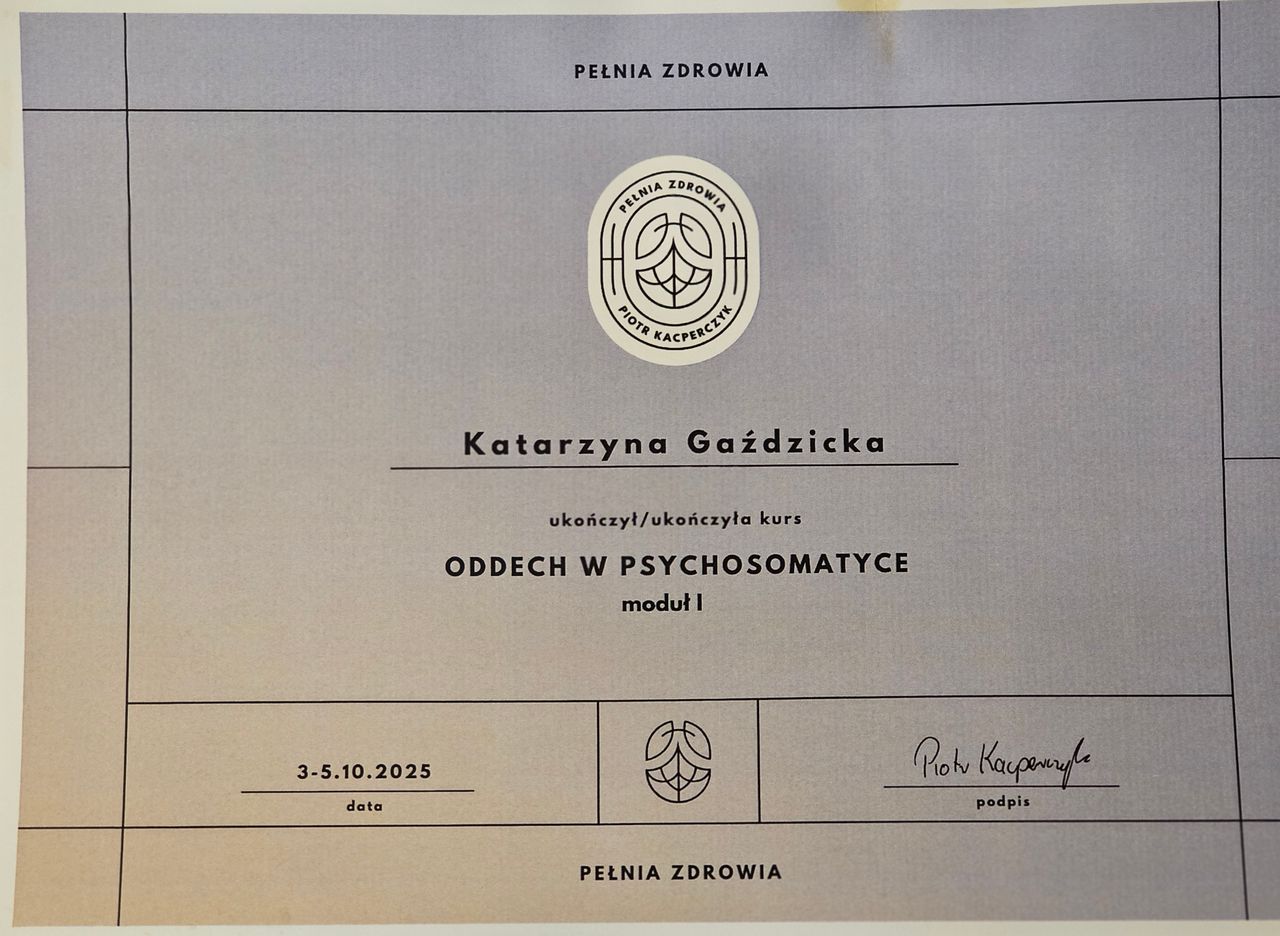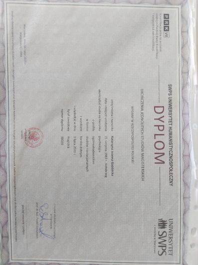 Przez rok pracowałam z Panią Kasią i mogę śmiało powiedzieć, że jest profesjonalistką w każdym calu. Od początku czuć było jej ogromną wiedzę, zaangażowanie i troskę. Pomogła mi dostrzec i nazwać rzeczy, których wcześniej nie byłam świadoma, dzięki czemu lepiej rozumiem siebie i swoje schematy działania. Jej trafne uwagi i sposób, w jaki tłumaczyła mechanizmy mojego funkcjonowania, pozwoliły mi zrozumieć źródła moich trudności. Zawsze była świetnie przygotowana do sesji i dostosowywała je do moich potrzeb. Do tego jest osobą niezwykle empatyczną, cierpliwą i ciepłą – stworzyła dla mnie bezpieczną przestrzeń do pracy nad sobą, za co jestem ogromnie wdzięczna. Nauczyła mnie wielu praktycznych narzędzi, które stosuję do dziś, a dzięki naszej pracy żyję bardziej świadomie i lepiej radzę sobie z emocjami. Z całego serca polecam Panią Kasię każdemu, kto zmaga się ze stresem, lękiem czy poczuciem bezradności.
