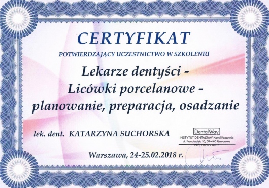 Jestem pasjonatką swojej pracy. Stale podnoszę kwalifikacje uczestnicząc w licznych kursach i szkoleniach, by zapewnić swoim pacjentom kompleksowe leczenie na najwyższym poziomie. Priorytetem jest dla mnie zadowolenie pacjenta i indywidualne podejście do jego potrzeb a to przekłada się na sukces leczenia.