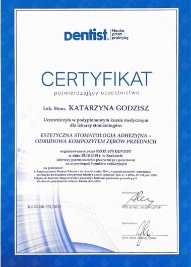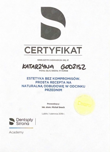 Zdecydowanie polecam dr Katarzynę Godzisz i klinikę gdzie doktor przyjmuje. Na 1 wizycie konsultacyjnej zostałam zdiagnozowana od A do Z. Od wykonania zdjęcia zębów, leczenia zachowawczego po estetykę uśmiechu i medycynę estetyczną. Moim problemem były starte zęby i liczne ubytki. Dr Kasia wyleczyła mi wszystkie zęby, odbudowała mój zgryz zabiegiem FlowInjection zmieniając kształt, wysokość a nawet kolor moich zębów na jaśniejszy. Dodatkowo dr podjęła się leczenia bruksizmu za pomocą botoxu. Przy okazji zdecydowałam się na podanie botoksu na czoło i obok oczu niwelując przy tym tzw „kurze łapki” i lwią zmarszczkę. Po 2 miesiącach od zabiegów jestem zachwycona ich efektem i rezultatem. Cały zespół bardzo uprzejmy i kompetentny. Dr Kasia jest wybitnym lekarzem z powołania, z dużym doświadczeniem i wiedzą. Niesamowicie empatyczna, delikatna i precyzyjna, podczas zabiegów panowała przyjazna atmosfera, dużo śmiechu co niwelowało mój stres związany z leczeniem.5* to zdecydowanie za mało:)