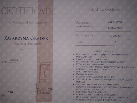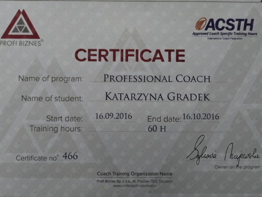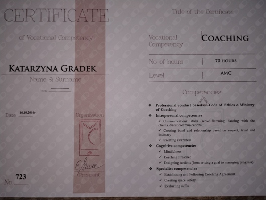 W wykonywanej pracy wykorzystuję również elementy coachingu wspierające rozwój osobisty oraz proces dążenia do osiągnięcia wyznaczonego celu.