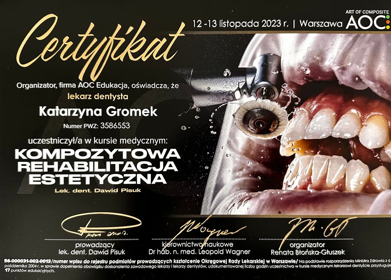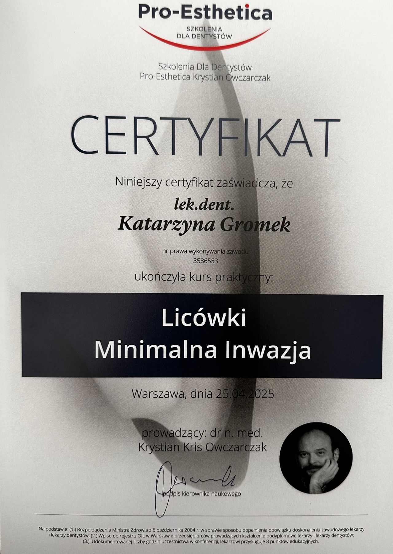 Nazywam się Katarzyna Gromek. Głównym obszarem moich zainteresowań jest szeroko pojęta stomatologia estetyczna.