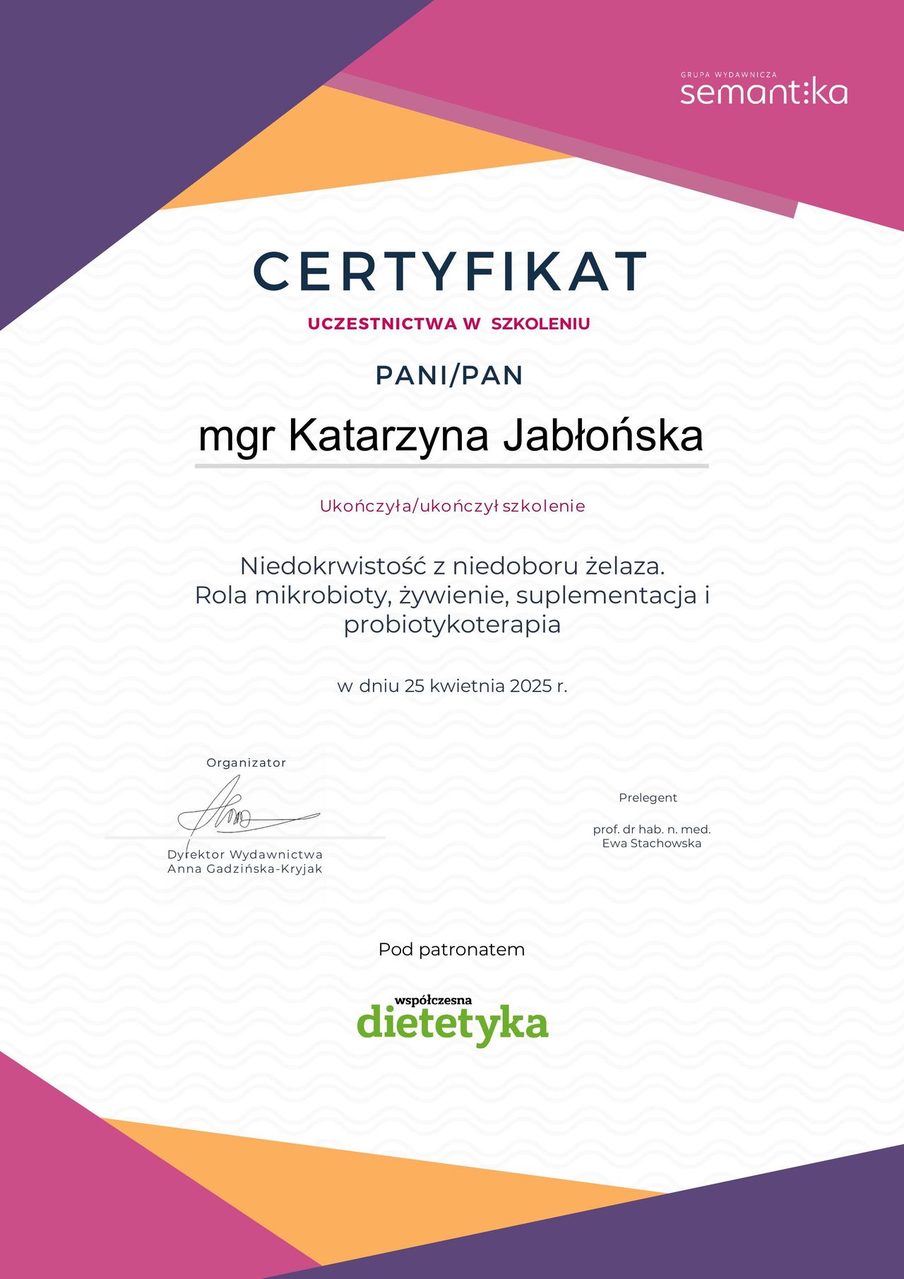 Na bieżąco podnosze swoje kwalifikacje, rozwijam sie zawodowo i edukacyjnie dla Was pacjenci. Dobry specjalista to specjalista z wiedzą
