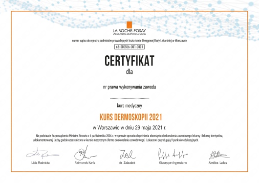 • Indywidualna Specjalistyczna Praktyka Lekarska Katarzyna Kałuc-Kunach • konsultacja dermatologiczna (pierwsza wizyta) •