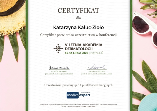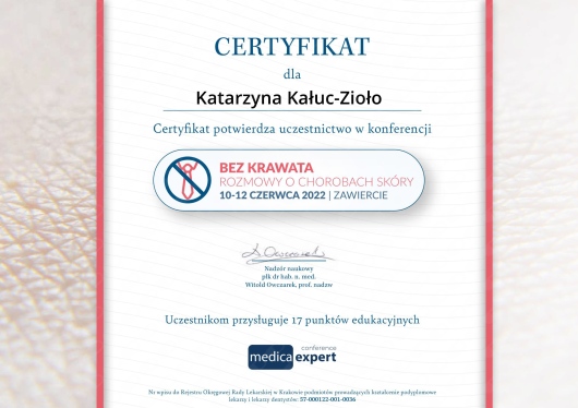 • Indywidualna Specjalistyczna Praktyka Lekarska Katarzyna Kałuc-Kunach • konsultacja dermatologiczna (kolejna wizyta) •