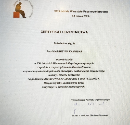 W trakcie specjalizacji (Psychiatra)