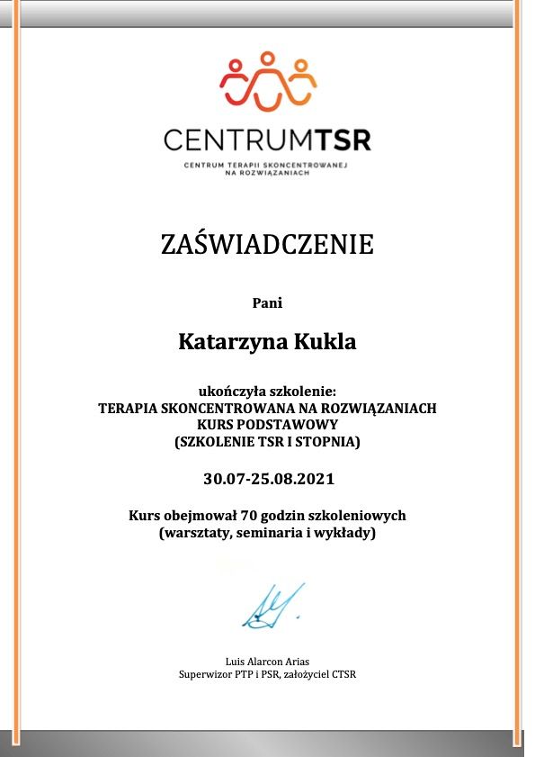 Swoją pracę poddaję regularnej superwizji i stale dbam o rozwój zawodowy.
