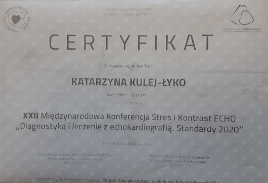Wizytę oceniam bardzo bardzo dobrze, wizyta punktualnie a nawet kilka minut wcześniej. Pani doktor bardzo miła i zaangażowana. Pełna diagnoza i szczegółowe omówienie sytuacji, wszytko wyjaśnione. Dziękuję bardzo i polecam Panią doktor Katarzynę Kulej-Łyko.