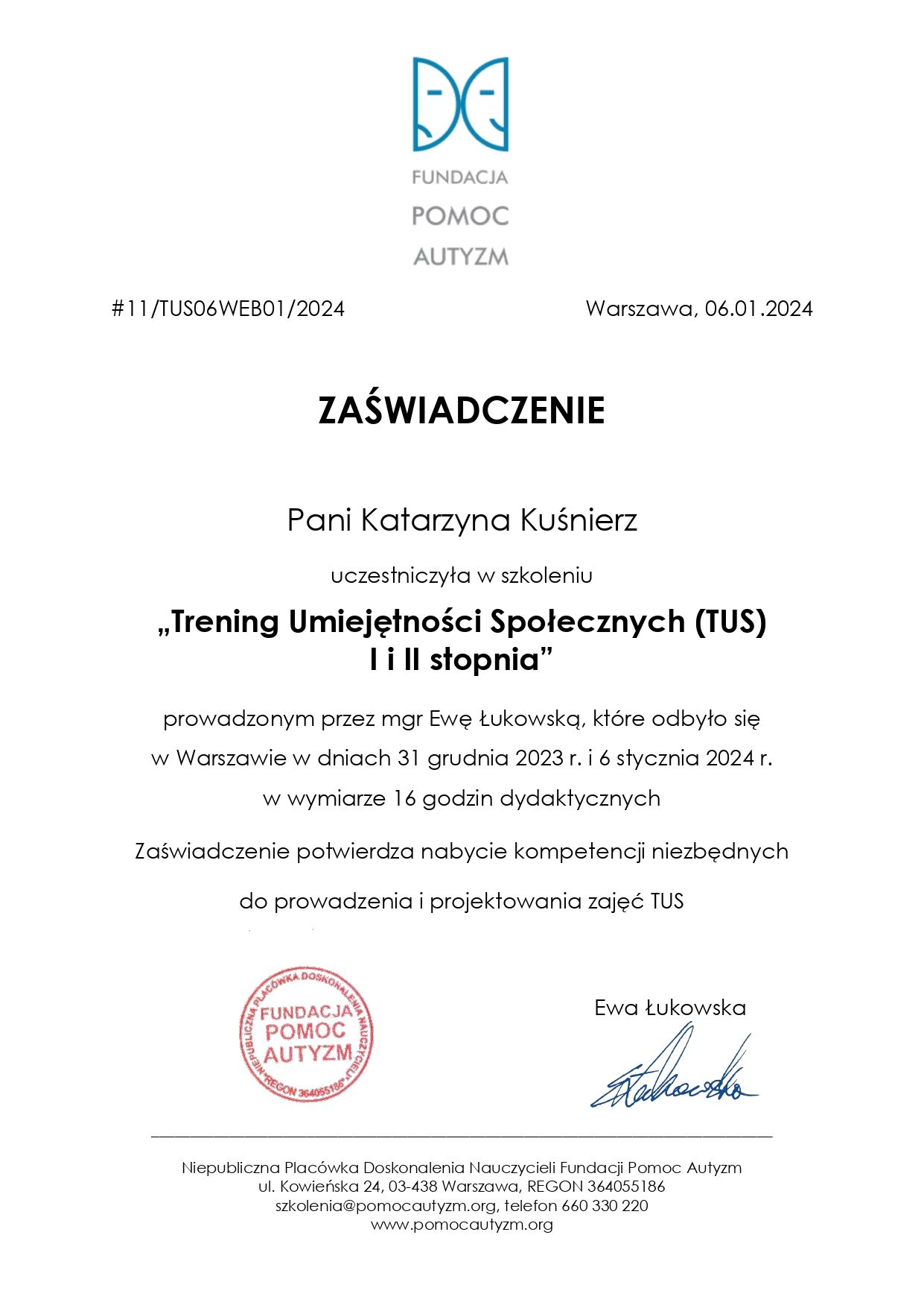 Jestem psychologiem, specjalistką psychodietetyki, trenerką TUS. Uczestniczę w Kursie Psychoterapii organizowanym przez Oddział Leczenie Zaburzeń Osobowości i Nerwic Szpitala Klinicznego im. J. Babińskiego w Krakowie. Doświadczenie zawodowe zdobywałam m.in. w Fundacji Synapsis podczas stażu terapeutycznego, gdzie pogłębiałam wiedzę na temat specyfiki całościowych zaburzeń rozwoju, w Środowiskowym Domu Samopomocy dla osób przewlekle chorujących psychicznie oraz na oddziałach psychiatrycznych Mazowieckiego Szpitala Wojewódzkiego Drewnica.