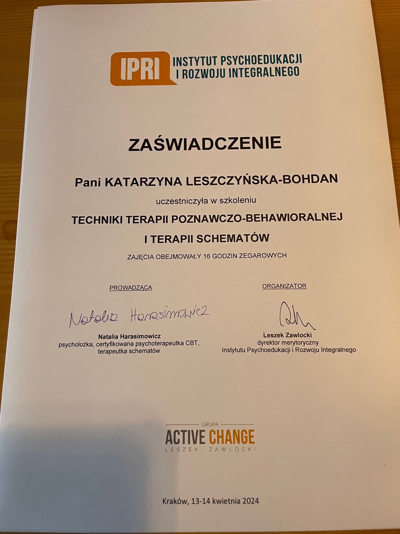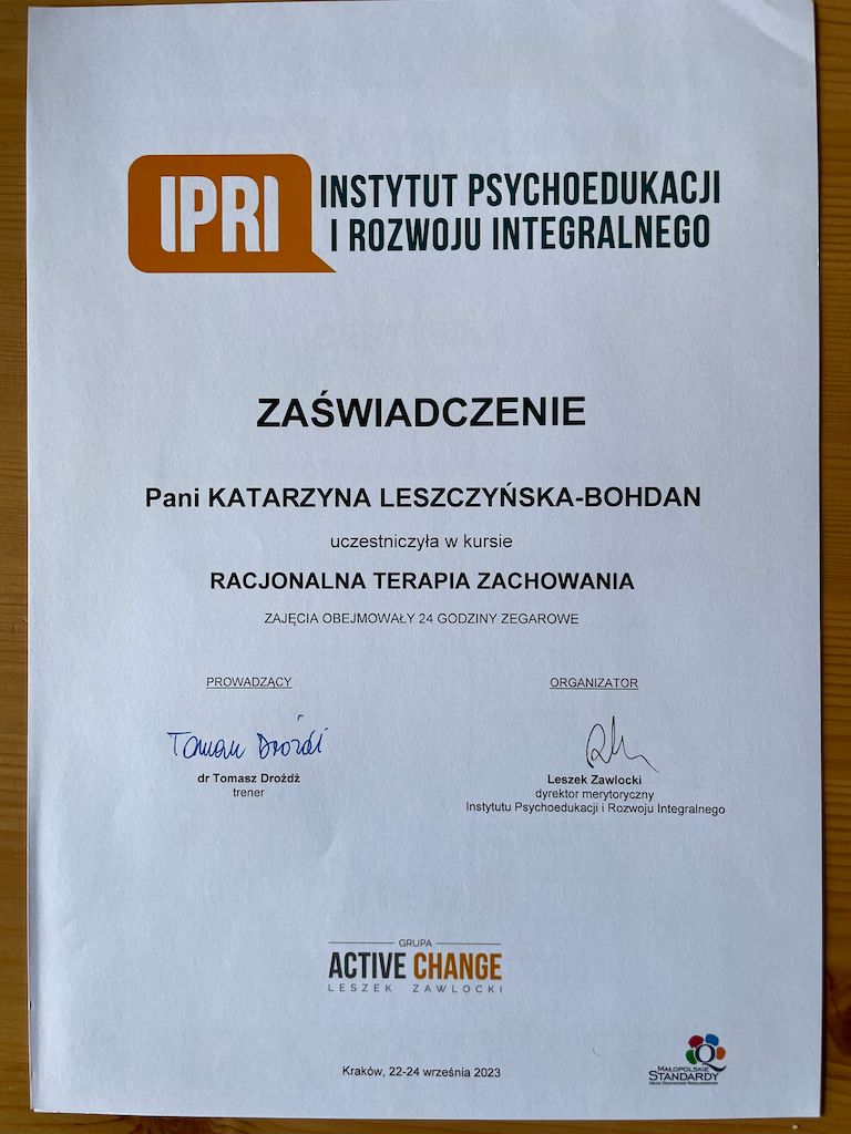 Realizuję procesy zmiany jednak nie prowadzę leczenia zaburzeń psychicznych.