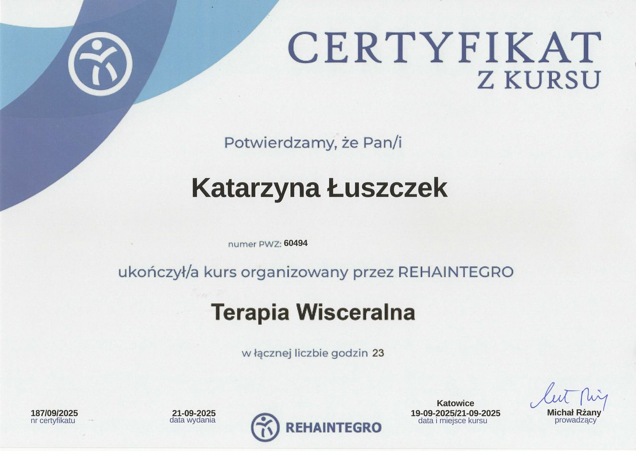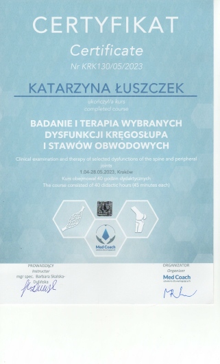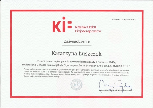 Jaki jest zakres porad oferowanych przez Katarzyna Łuszczek?Katarzyna Łuszczek to fizjoterapeuta. Na podstawie swojego doświadczenia i wykształcenia Katarzyna Łuszczek oferuje usługi takie jak: konsultacja fizjoterapeutyczna.