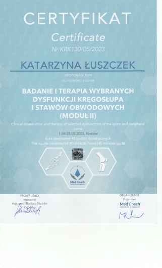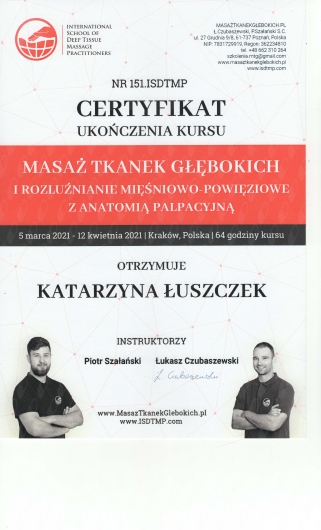 Jedna wizyta wystarczyła, aby moja dolegliwość minęła. Pani Katarzyna jest niezwykle zaangażowana i kompetentna. Widać, że kocha to, co robi. Wizyta przebiegła w bardzo dobrej atmosferze, zastosowana terapia przyniosła efekt. Bardzo dziękuję i polecam.