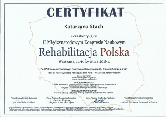 Mając na uwadze dobro moich pacjentów stale poszerzam zakres swoich umiejętności uczestnicząc w licznych kursach, szkoleniach i konferencjach naukowych.