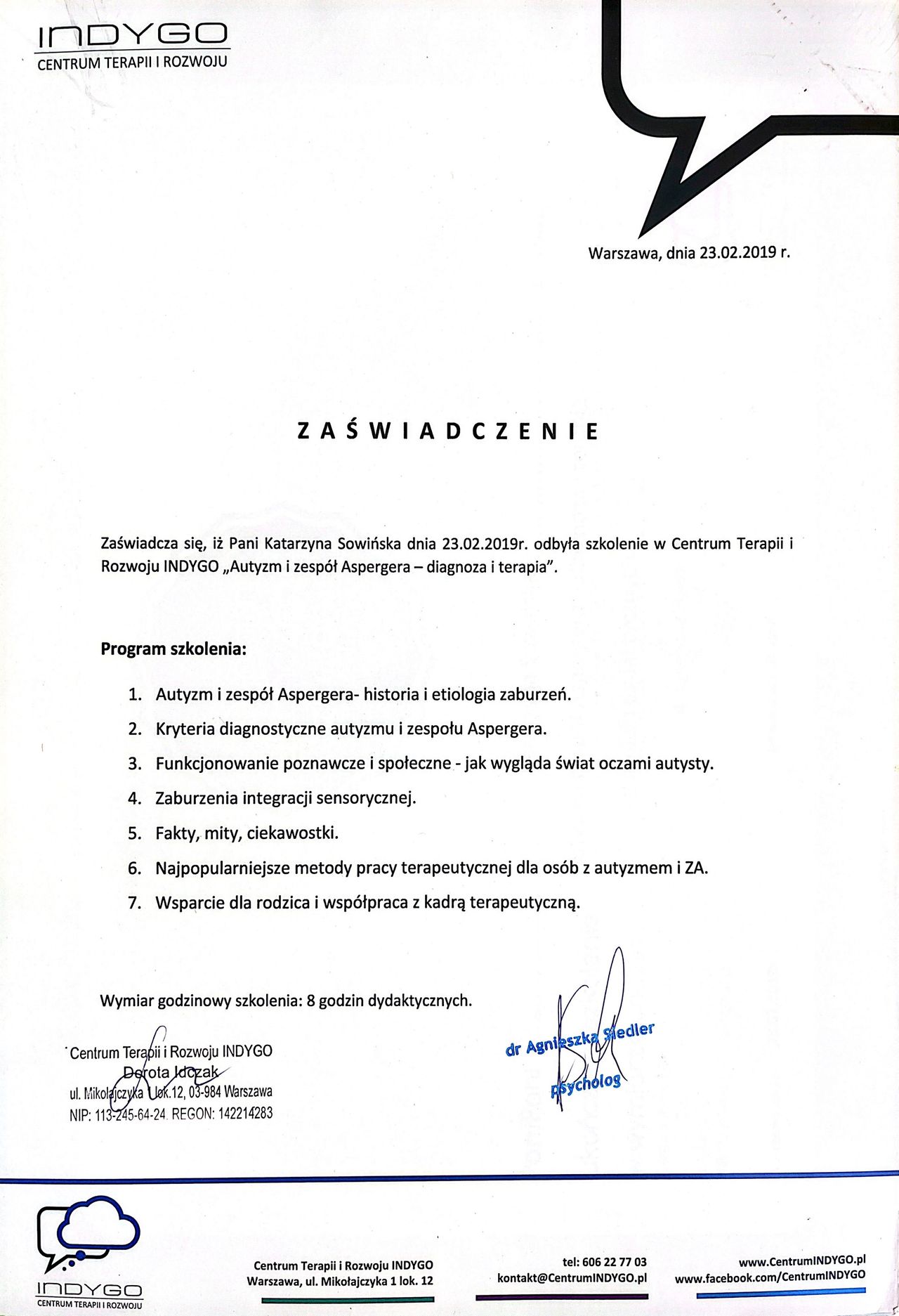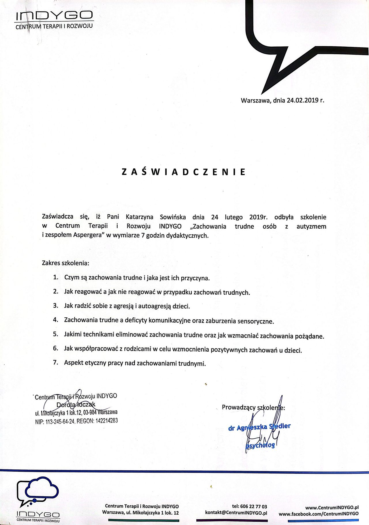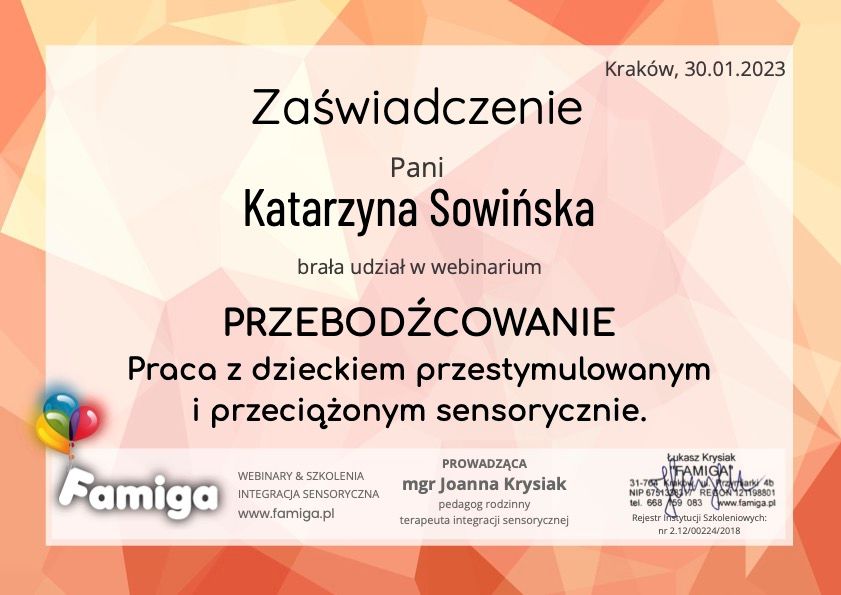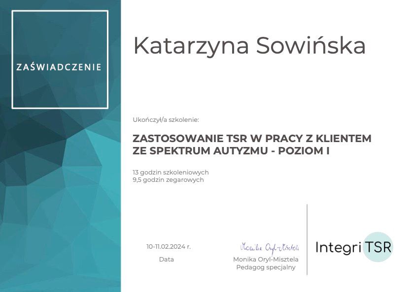 Pani Katarzyna w profesjonalny sposób wspierała moje dziecko. Dzięki niej moja córka zyskała pewność siebie, a ja zrozumiałam jak ją wspierać. Spotkania dawały realne efekty! Polecam