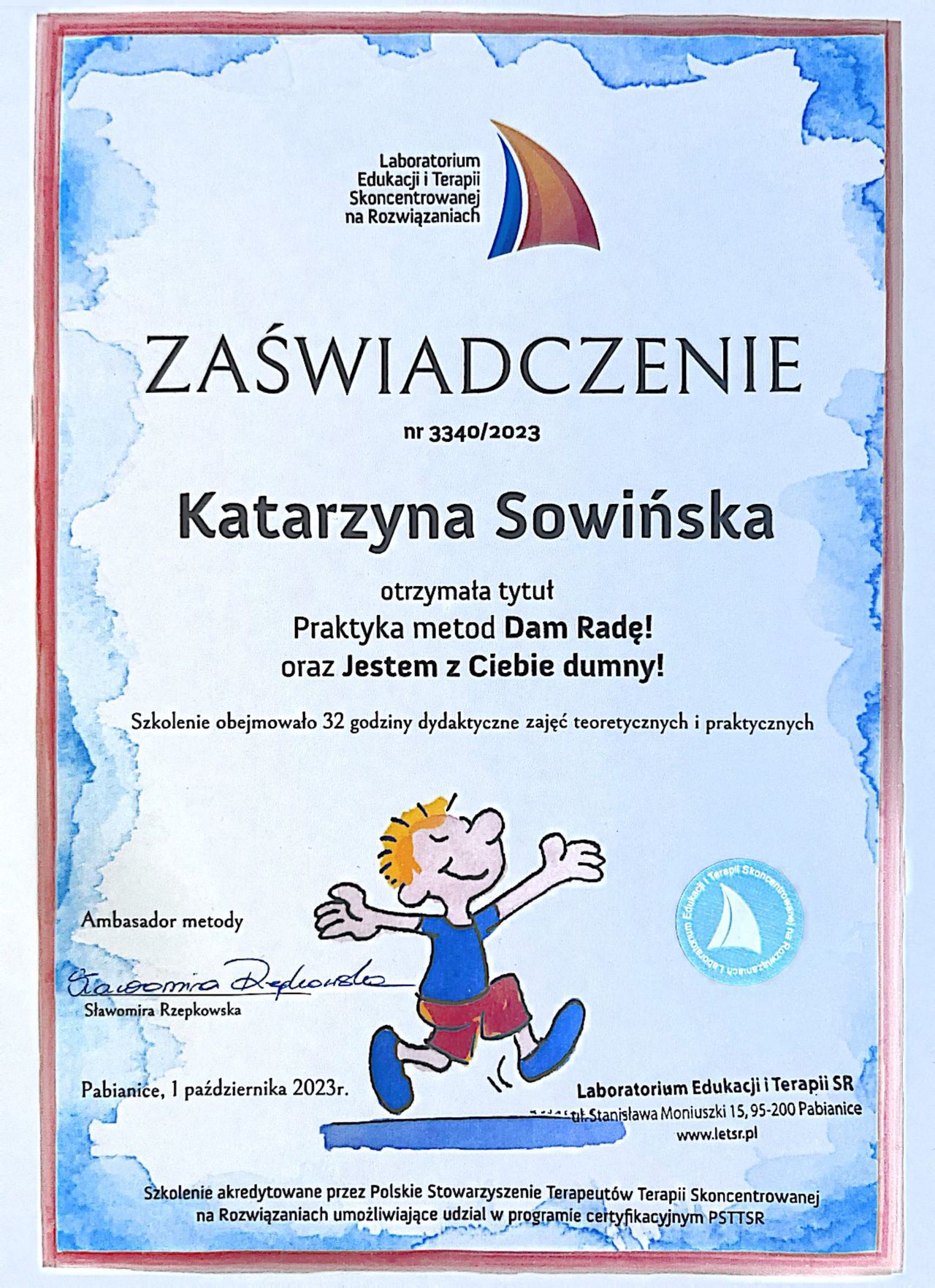 Bardzo dziękuję Pani za pozytywną opinię i zaufanie. Cieszę się też, że potrafi Pani z powodzeniem wdrażać w życie poznane treści i wskazówki. Widać, że jest Pani rodzicem, któremu na prawdę zależy