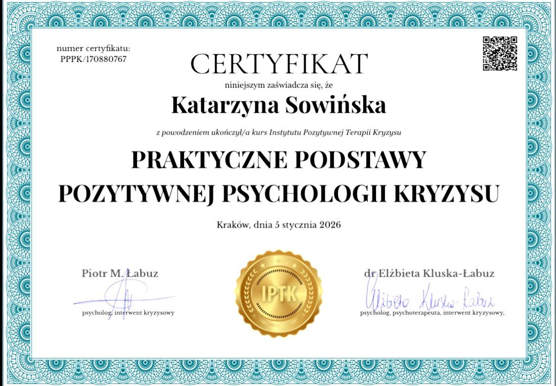 Pani Kasia to wyjątkowa psycholożka, która podchodzi do swojej pracy z ogromnym zaangażowaniem i empatią. Tworzy atmosferę pełną zrozumienia i akceptacji, co sprawia, że łatwo się otworzyć i szczerze mówić o swoich problemach. Jej trafne spostrzeżenia i profesjonalne podejście pomagają spojrzeć na trudności z innej perspektywy i znaleźć skuteczne rozwiązania. Dzięki niej można poczuć się wysłuchanym i zrozumianym, a rozmowy dają realne wsparcie i motywację do zmian. Serdecznie polecam każdemu, kto szuka kompetentnego i ciepłego specjalisty.