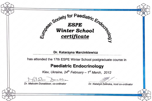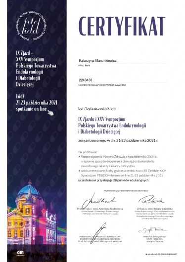 Zajmuje się diagnostyką i leczeniem chorób z zakresu endokrynologii i diabetologii dziecięcej takich jak: