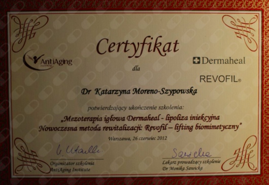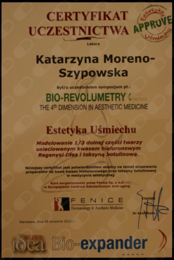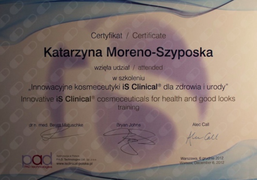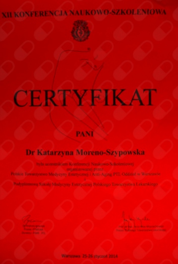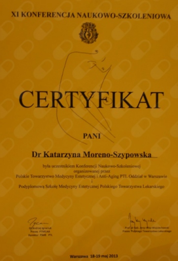 Chcąc szerzej zajmować się estetyką w pracy i rozwijać się zawodowo ukończyła prestiżowe ,trzyletnie studia podyplomowe w PSME ( Podyplomowej Szkole Medycyny Estetycznej i Anti-Aging) Polskiego Towarzystwa Lekarskiego w Warszawie i uzyskałam tytuł dyplomowanego lekarza medycyny estetycznej .