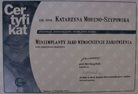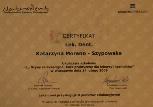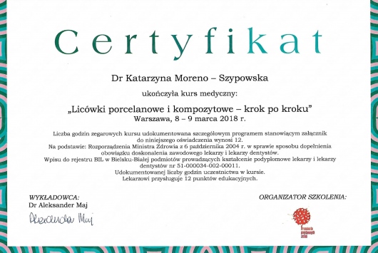 -Wychodząc naprzeciw tym zamiłowaniom stale uczestniczy w specjalistycznych kursach i kongresach w kraju i zagranicą z zakresu ortodoncji i medycyny estetycznej.