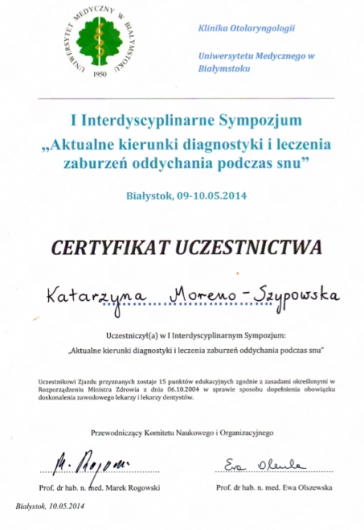 2014.05.10 - I Interdyscyplinarne Sympozjum ”Aktualne kierunki diagnostyki i leczenia zaburzeń oddychania podczas snu” (BIAŁYSTOK)