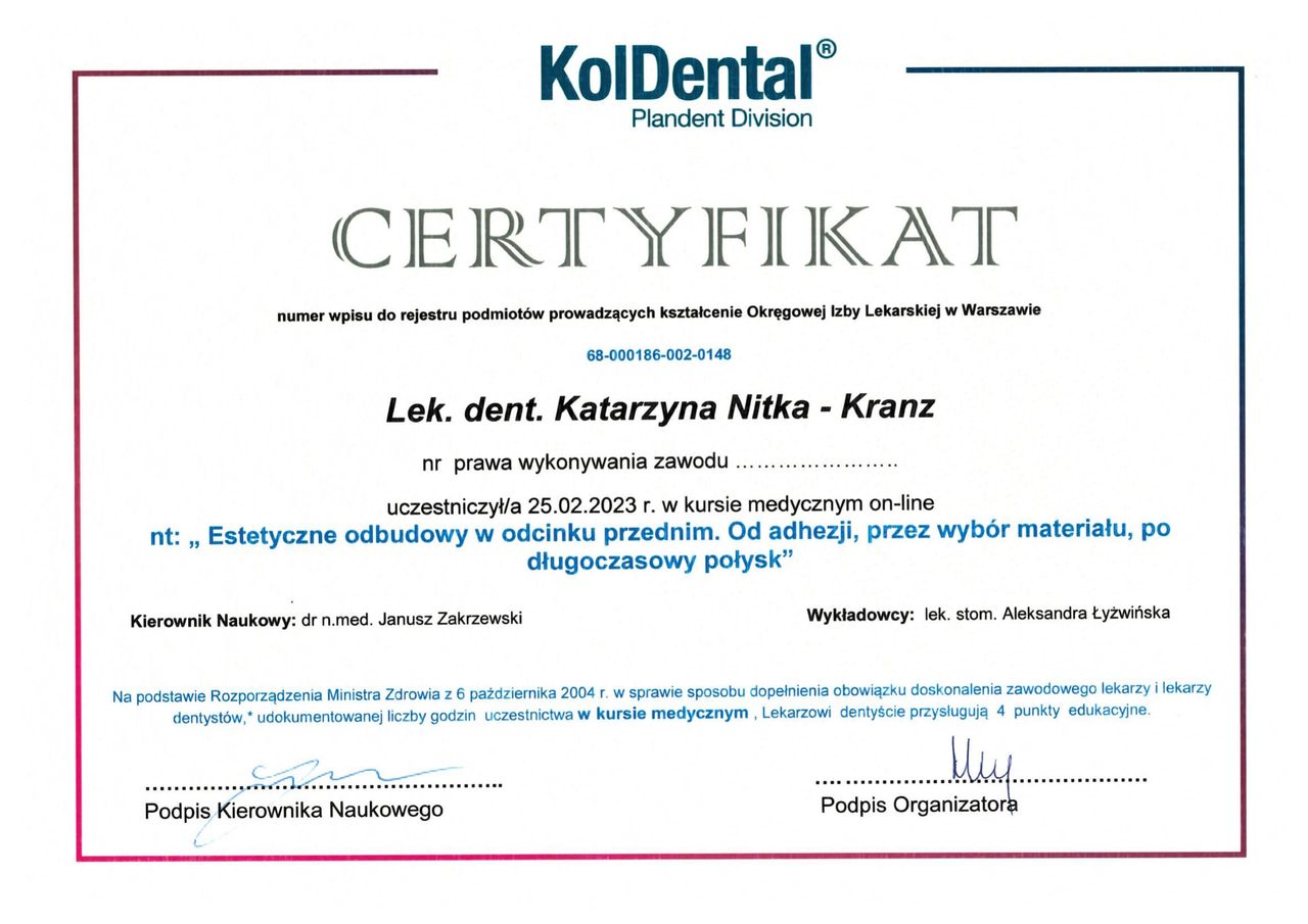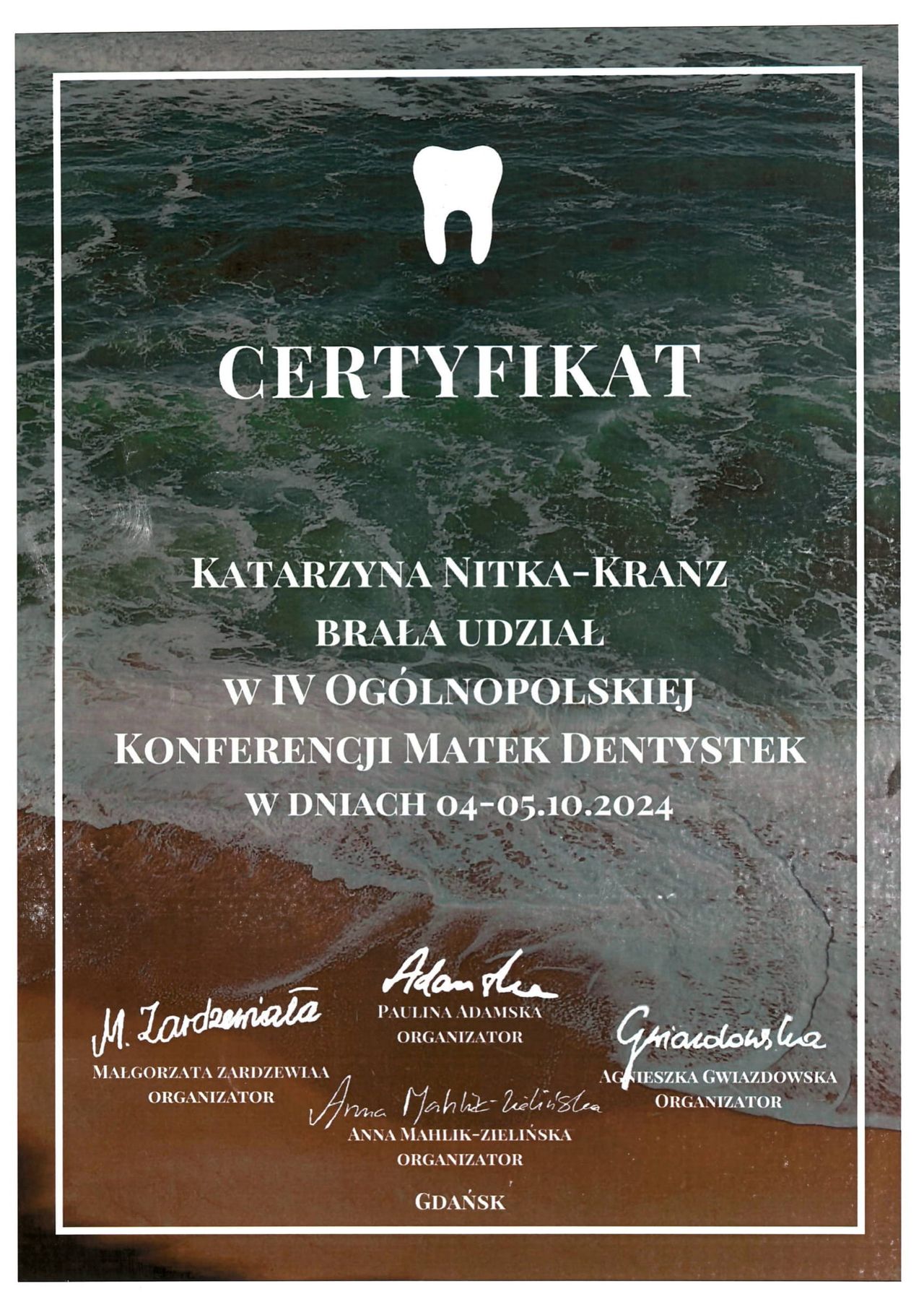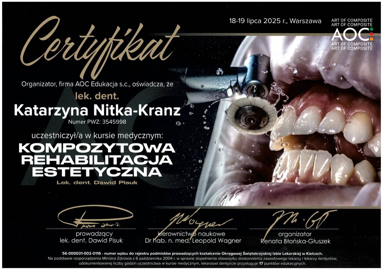 Bardzo gorąco polecam Panią Katarzynę Nitka-Kranz. Pełen profesjonalizm i zaangażowanie,jest przemiłą osobą. Każda wizyta odbywa się sprawnie,fachowo w bardzo miłej atmosferze. Wszystkie Panie asystentki również są przesympatyczne:).