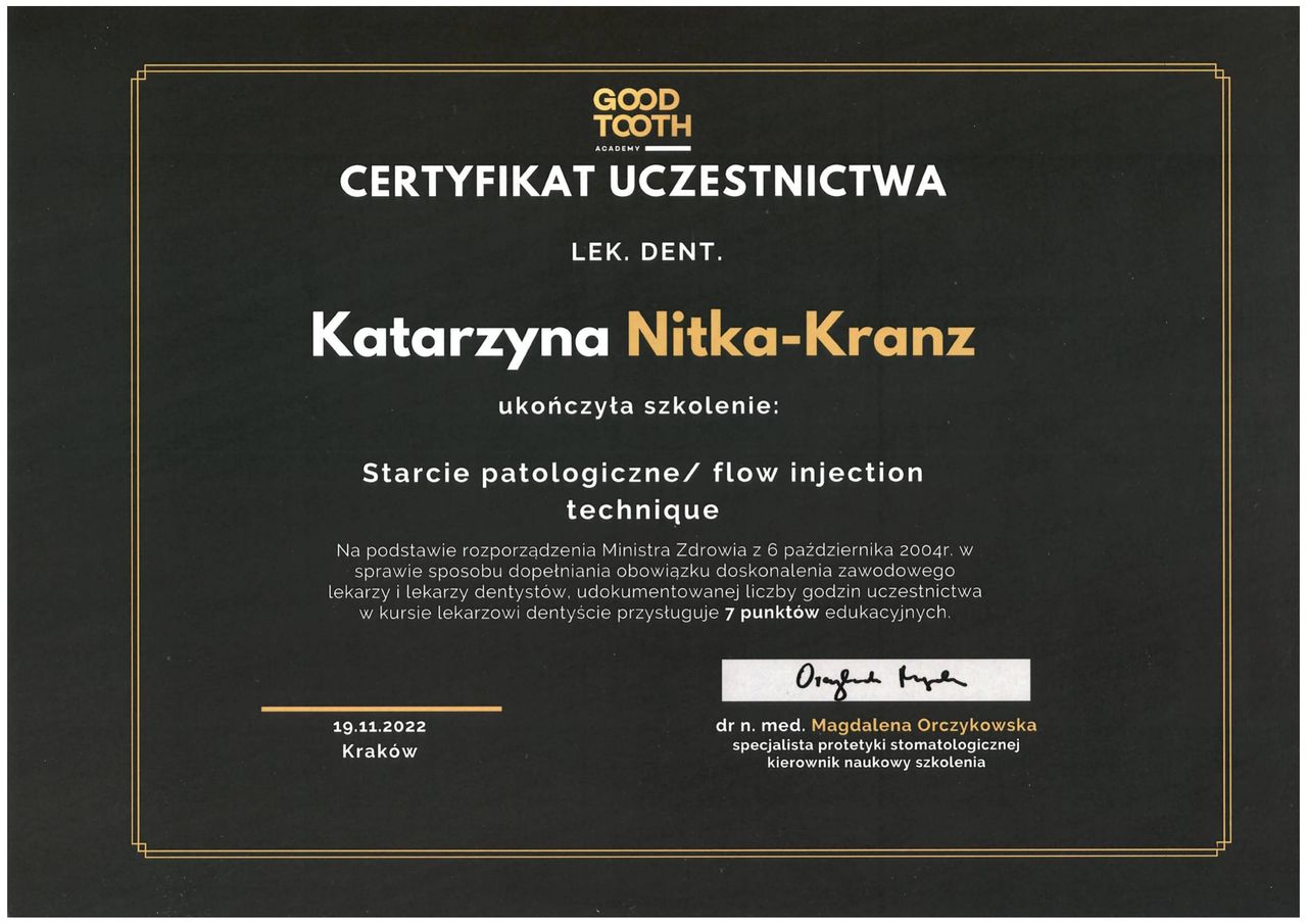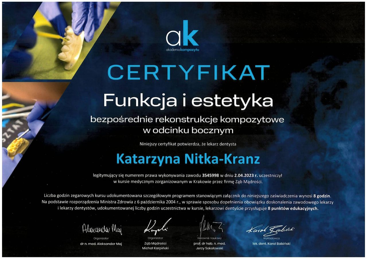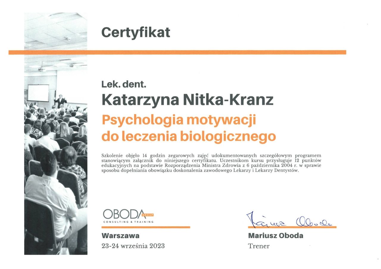 Bardzo gorąco polecam Panią Katarzynę Nitka-Kranz. Pełen profesjonalizm i zaangażowanie,jest przemiłą osobą. Każda wizyta odbywa się sprawnie,fachowo w bardzo miłej atmosferze. Wszystkie Panie asystentki również są przesympatyczne:).