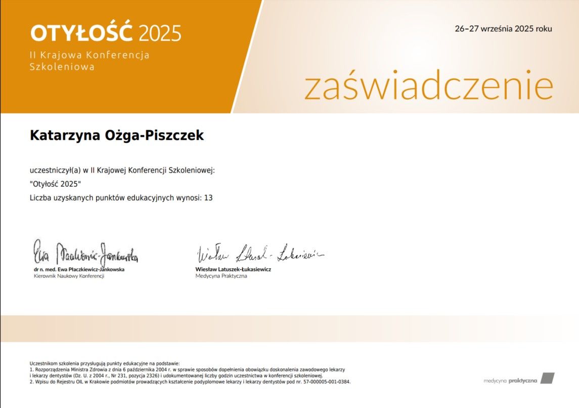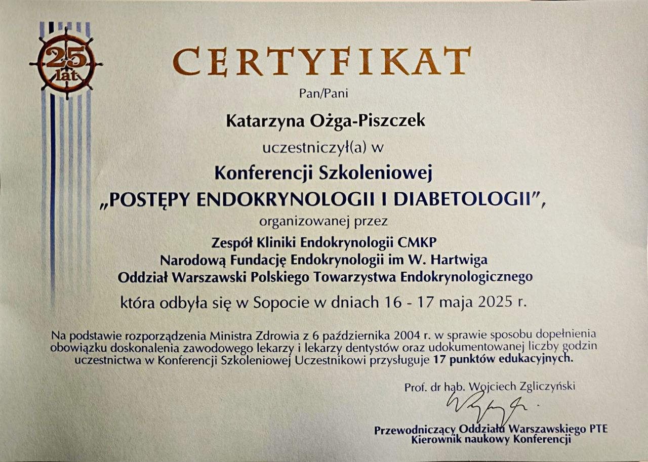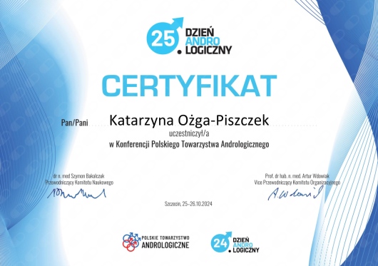 Poszerzam swoją wiedzę, uczestnicząc w międzynarodowych konferencjach i szkoleniach (m.in. w Niemczech, Szwecji, Włoszech, Indonezji). Jestem członkiem uznanych towarzystw naukowych, takich jak European Society of Endocrinology, Polskie Towarzystwo Zespołu Policystycznych Jajników, Polskie Towarzystwo Andrologiczne oraz Polskie Towarzystwo Leczenia Otyłości.