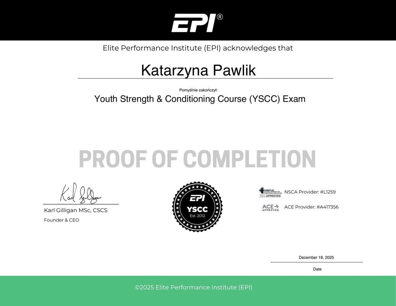 Kompetencje zawodowe rozwijam, uczestnicząc w kursach i szkoleniach z zakresu: trening medyczny w schorzeniach dolnego odcinka kręgosłupa i kończyny dolnej oraz rehabilitacja stawu kolanowego po operacjach. Jestem trenerem personalnym. Planuje dalszy rozwój w obszarze fizjoterapii sportowej, by jeszcze skuteczniej wspierać zarówno zawodowych sportowców, jak i osoby dopiero rozpoczynające aktywność fizyczną, którzy pragną dbać o swoje zdrowie w sposób świadomy i długofalowy. W pracy kieruję się przekonaniem, że konsekwencja i cierpliwość są kluczem do trwałych efektów – zarówno w sporcie, jak i w procesie rehabilitacji.