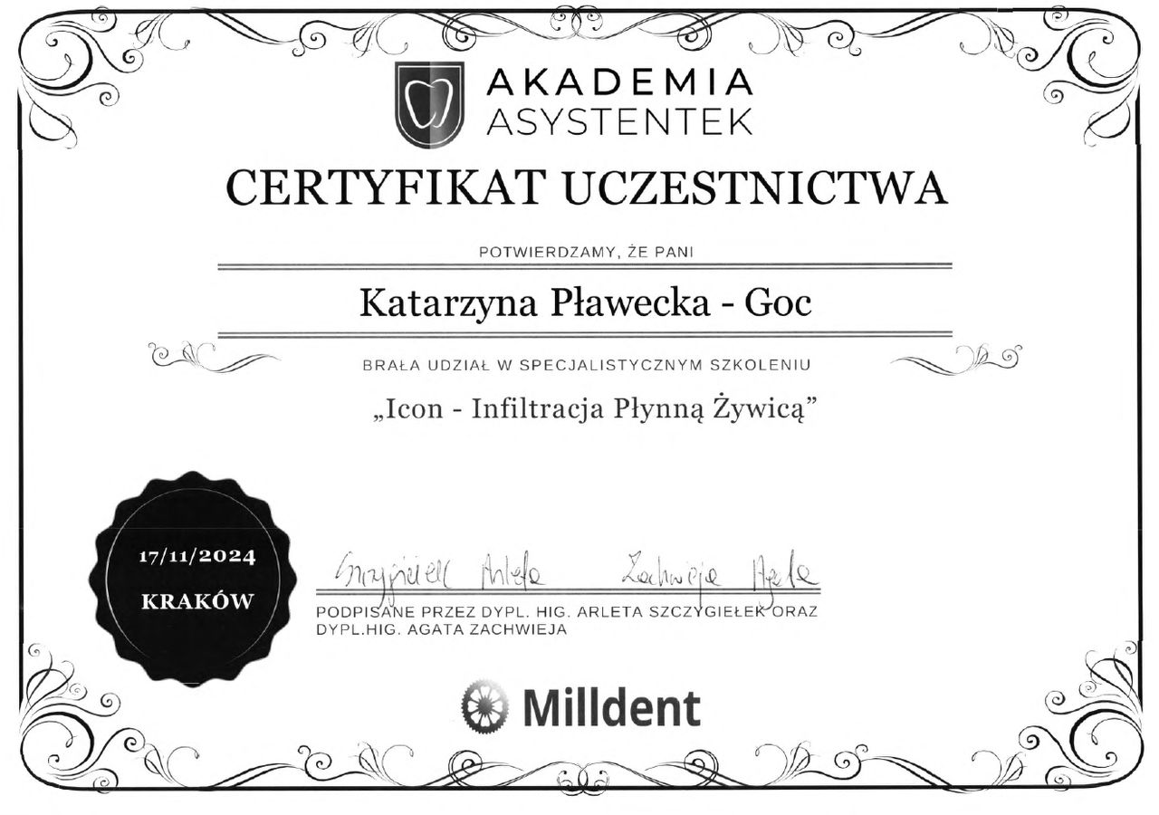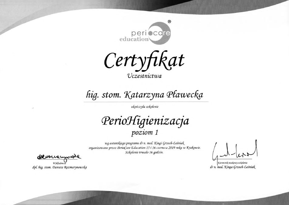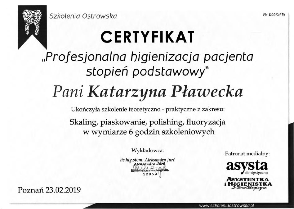 Jestem higienistką z 6 letnim doświadczeniem. Ukończyłam szkołę policealną TEB w Krakowie na kierunkach higienistka stomatologiczna oraz technik elektroradiolog, co pozwoliło mi zdobyć solidną wiedzę teoretyczną oraz praktyczne umiejętności niezbędne w mojej pracy.
