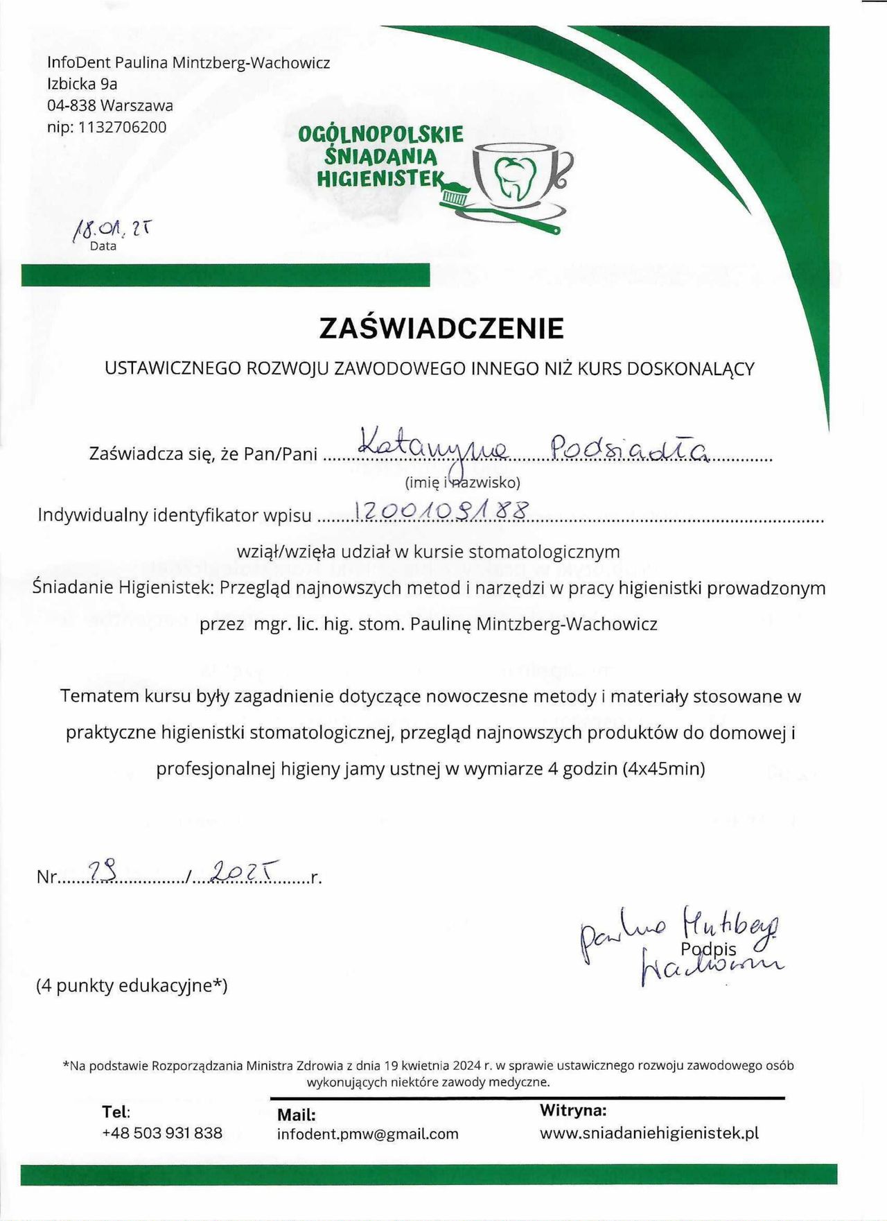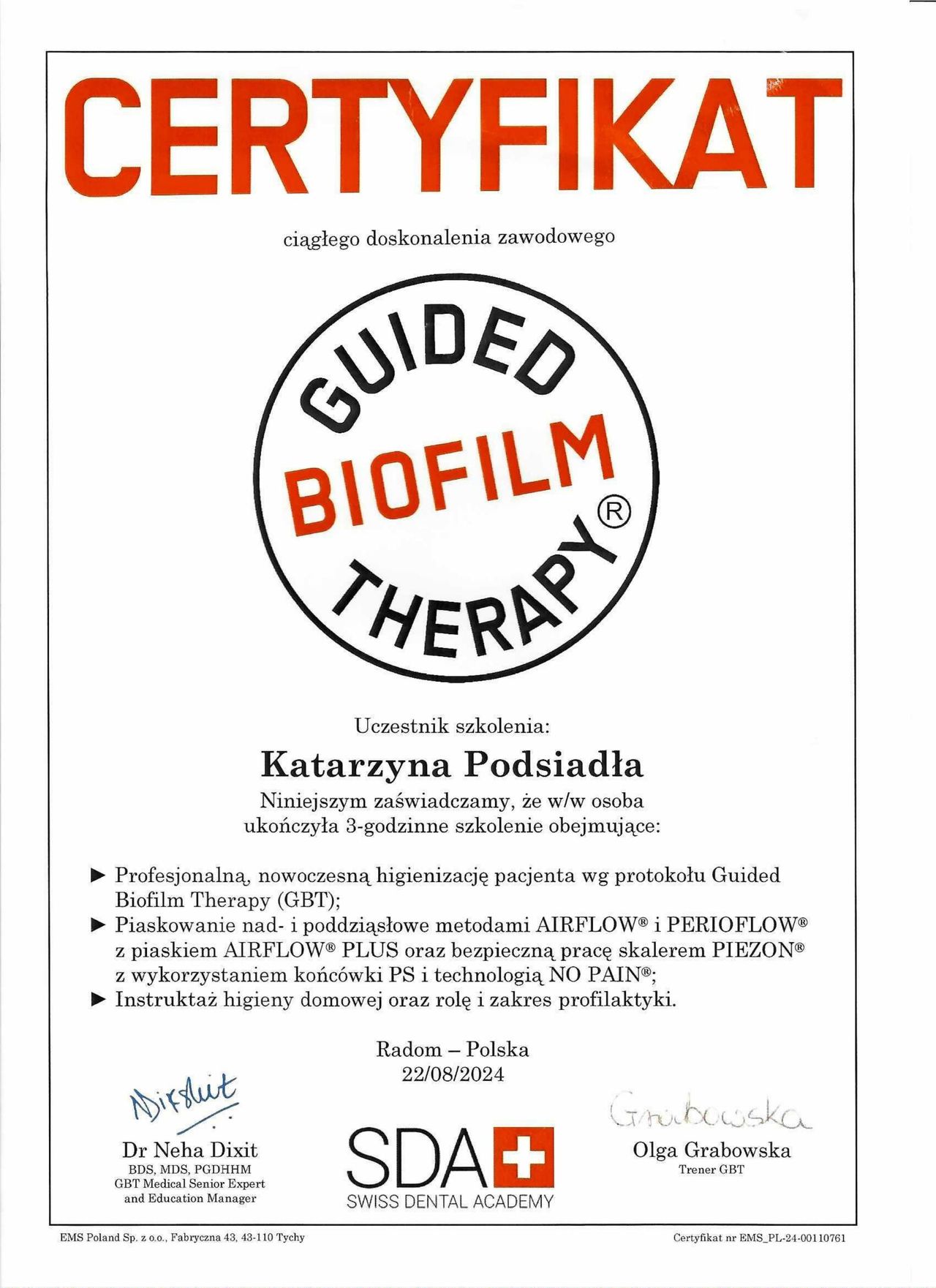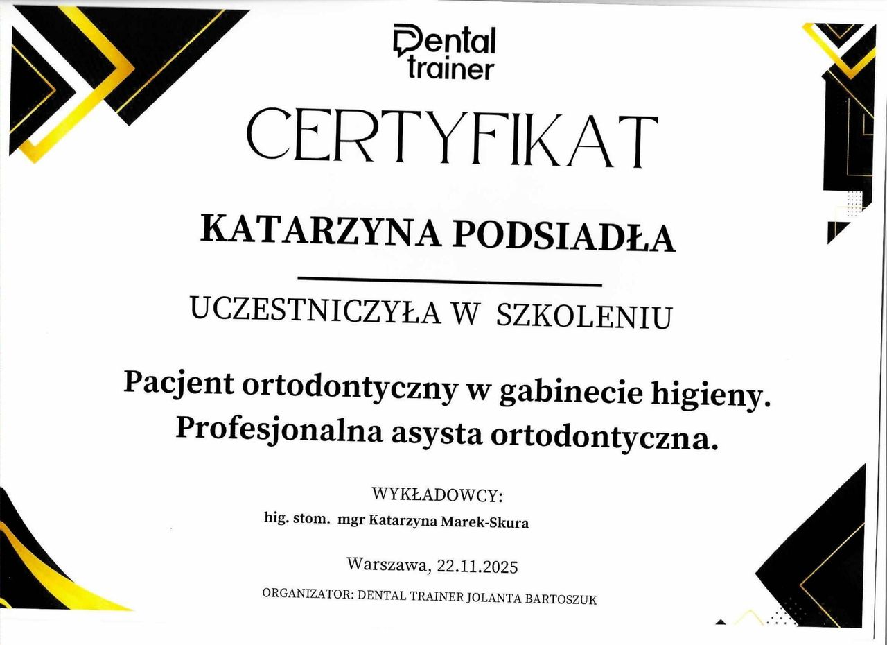Jaki jest zakres porad oferowanych przez Katarzyna Podsiadła?Katarzyna Podsiadła to higienistka/higienista stomatologiczny. Na podstawie swojego doświadczenia i wykształcenia Katarzyna Podsiadła oferuje usługi takie jak: higienizacja, pakiet higienizacyjny z instruktażem, Scaling + fluoryzacja, usuwanie kamienia nazębnego, scaling + piaskowanie, scaling, profilaktyka próchnicy.