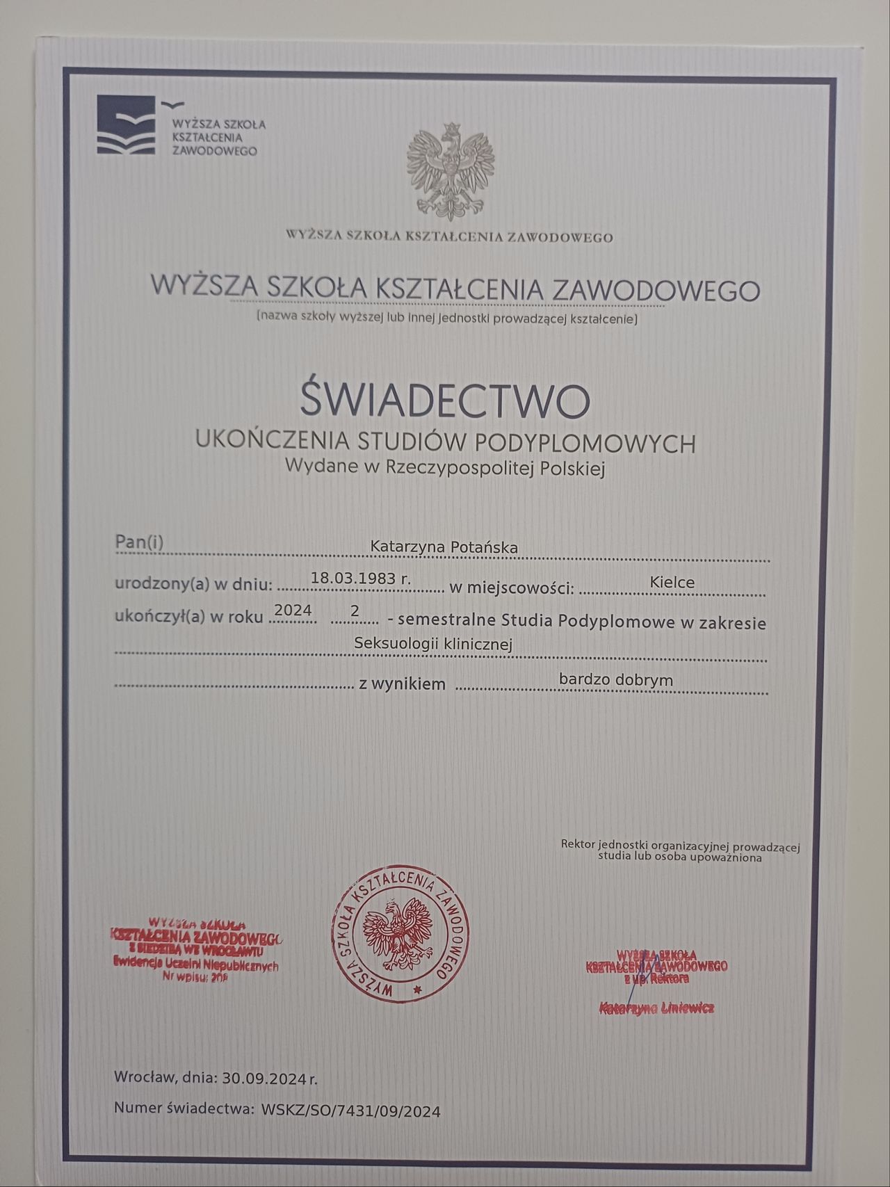 Jestem wykładowcą akademickim oraz doktorantką Akademii WSB. Stale podnoszę kwalifikacje, aby zapewniać pacjentom rzetelną, aktualną i opartą na standardach naukowych diagnozę oraz terapię.