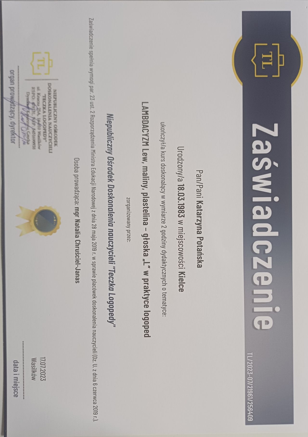 Jako logopeda i oligofrenopedagog posiadam dodatkowe kompetencje w zakresie pracy z dziećmi z opóźnionym rozwojem mowy, trudnościami komunikacyjnymi oraz niepełnosprawnością intelektualną. Dzięki interdyscyplinarnemu podejściu patrzę na funkcjonowanie dziecka całościowo uwzględniając aspekty emocjonalne, poznawcze i rozwojowe.