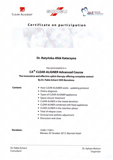 Przeszłam u pani Doktor leczenie ortodontyczne i jestem bardzo zadowolona. Pani doktor już na samym początku (w trakcie pierwszej wizyty) miała mnóstwo pomysłów co i jak można zrobić proponując kilka alternatyw na moje obawy (nie chciałam nakładek Invisalign a inny lekarz jako jedyną alternatywę w tej sytuacji podał najpierw półroczne noszenie przytwierdzonego na podniebieniu aparatu), co pokazuje, że doktor ma bardzo dużą wiedzę i potrafi ją dopasować do każdego pacjenta.