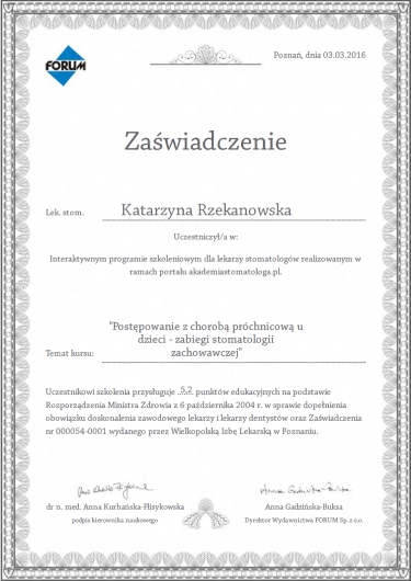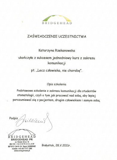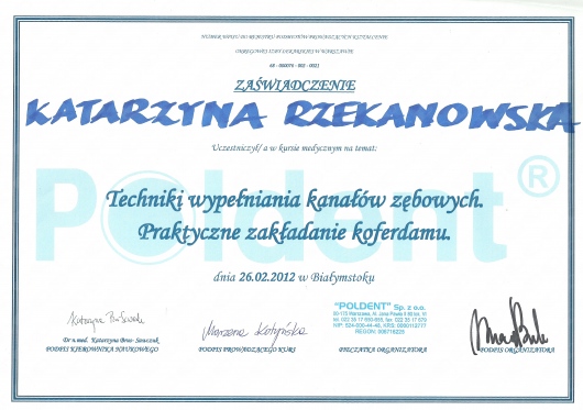 Chciałabym bardzo podziękować pani doktor i asystentkom, za zaangażowanie, profesjonalizm i cierpliwość Mój przypadek jest dość ciężki i wymagał długiej, wyczerpującej wizyty. Wszyscy starali się jak mogli, by wizyta przebiegła tak komfortowo jak to możliwe :)