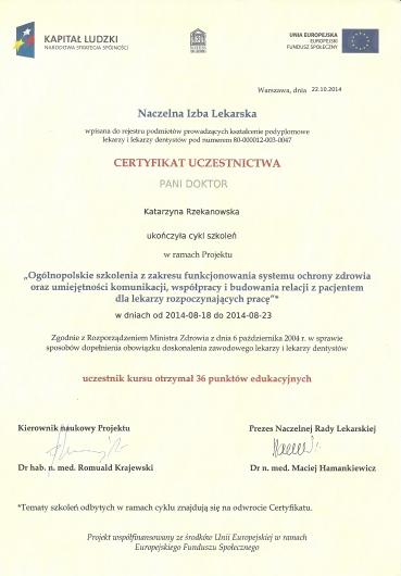 Katarzyna Rzekanowska: co mówią pacjenci?8 osób dodało swoją opinię. Katarzyna Rzekanowska ma średnią ocen 5 (na 5 gwiazdek).
