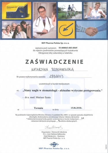 Pani dr Kasia jest profesjonalistką w każdym calu. Jak dotąd nikt tak przystępnie nie wytłumaczył mi co mi dolega, czego jest to wynikiem i co może się potencjalnie wydarzyć w związku z początkami widocznych zmian. Ponadto odkryła, że moja "dieta" (m.in woda z sokiem z cytryny każdego ranka) nie jest korzystna dla szkliwa a tyle lat walczyłam z nadwrażliwością... Elegancko naprawiła odkryte szyjki zębowe przy czym nic nie bolało, pierwszy raz widziałam dokładnie na dużym ekranie moje zęby i to co sie rozwija oraz efekt końcowy. Zaplanowała dalsze działania, dała na karteczce wyrys który ząb wymaga uwagi, przekazała płytkę ze zdj.pantomograficznym oraz pokierowała co do problemów ze stawami skroniowo-żuchwowymi które są moją zmorą i wymagają bardzo holistycznego podejścia. Miała dla mnie czas! Nie czułam presji, że za drzwiami jest tłum pacjentów :)