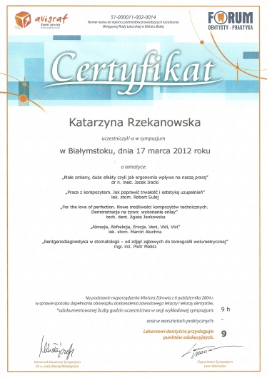 Najważniejsza jest dla mnie jakość pracy, która gwarantuje długi pozytywny efekt leczenia.