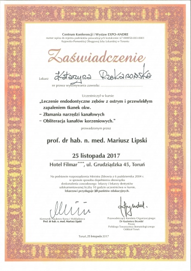 Posługuję się najnowszymi metodami leczenia z wykorzystaniem mikroskopu i najlepszej diagnostyki – tomografii stożkowej CBCT.