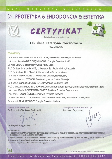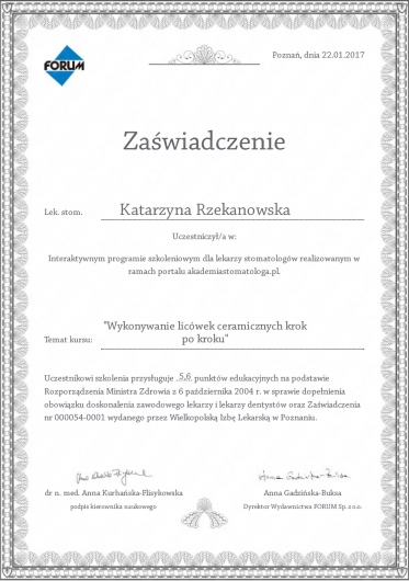 Jaki jest zakres porad oferowanych przez Katarzyna Rzekanowska?Katarzyna Rzekanowska to stomatolog. Na podstawie swojego doświadczenia i wykształcenia Katarzyna Rzekanowska oferuje usługi takie jak: konsultacja protetyczna, badania profilaktyczne.