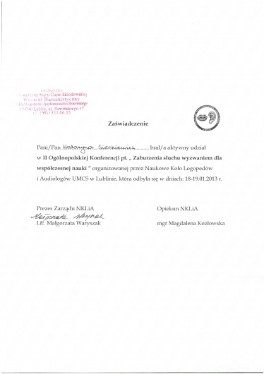 Czujemy się zaopiekowani i liczę na powodzenie terapii.• Centrum Diagnozy i Terapii Usłyszeć Siebie- Tomatis, Logopedia • Konsultacja do metody Tomatisa •