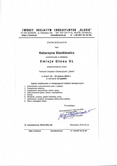 Jaki jest zakres porad oferowanych przez Katarzyna Sienkiewicz?Katarzyna Sienkiewicz to logopeda. Na podstawie swojego doświadczenia i wykształcenia Katarzyna Sienkiewicz oferuje usługi takie jak: konsultacja logopedyczna, badania diagnostyczne, Konsultacja do metody Tomatisa, konsultacja online.