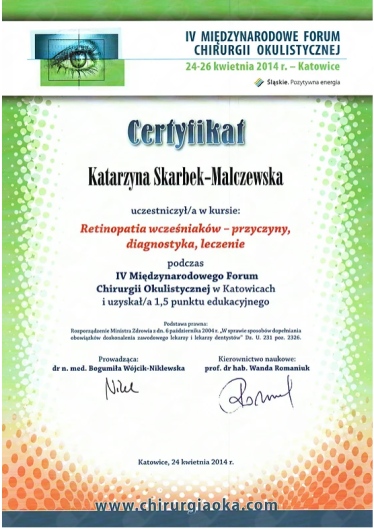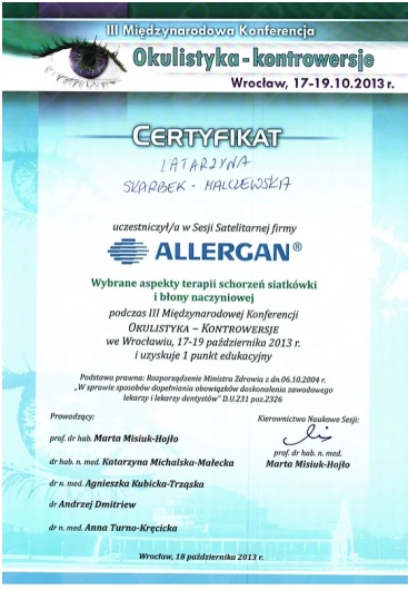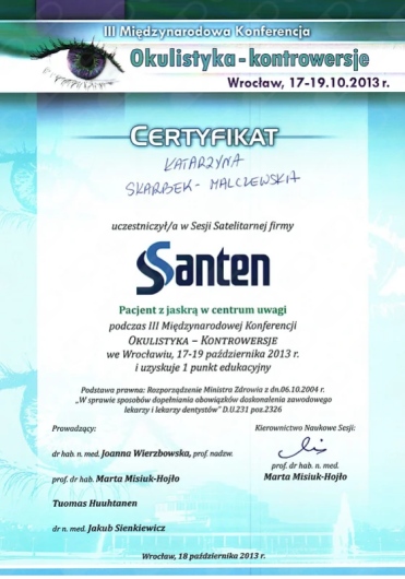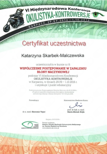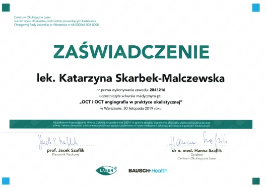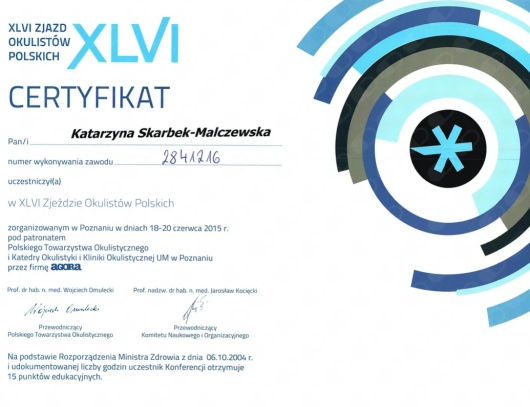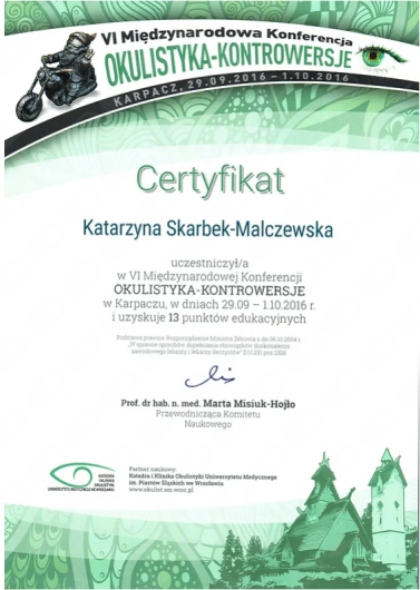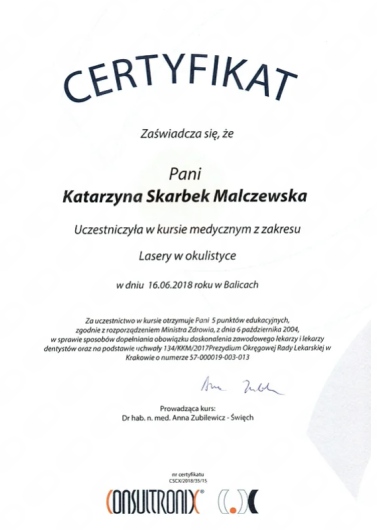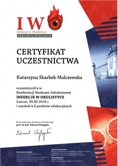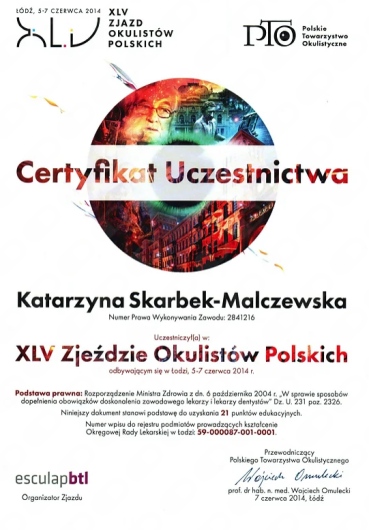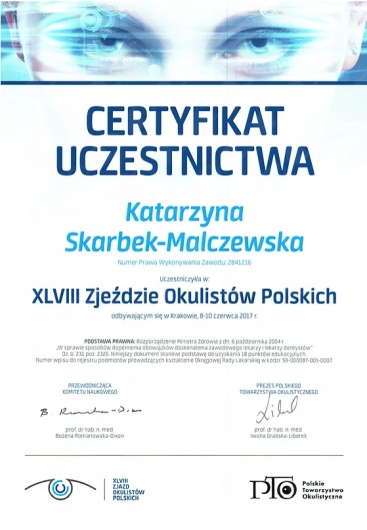 Okulistyka to jedna z najszybciej rozwijających się dziedzin medycyny – dlatego stale uczestniczę w konferencjach, szkoleniach i warsztatach w Polsce i za granicą. Dzięki temu mogę proponować pacjentom metody leczenia oparte na najnowszych badaniach i standardach.