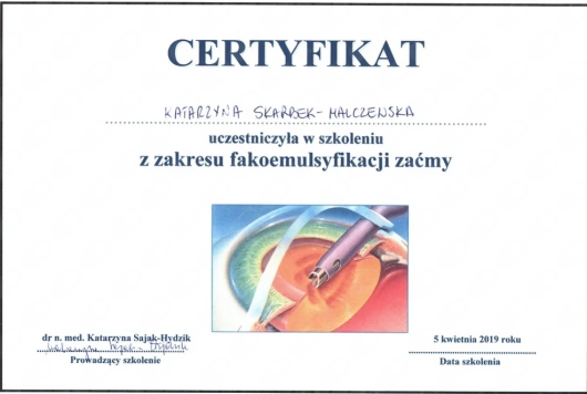 Studia medyczne ukończyłam w 2012 roku na Śląskim Uniwersytecie Medycznym w Katowicach. Już wtedy wiedziałam, że chcę poświęcić się okulistyce – dziedzinie, która wymaga ogromnej precyzji i daje natychmiastowe, widoczne efekty dla pacjenta. Szkolenie specjalizacyjne odbywałam w Uniwersyteckim Centrum Klinicznym im. Prof. K. Gibińskiego w Katowicach oraz w Wojewódzkim Szpitalu Okulistycznym w Krakowie, gdzie zdobywałam doświadczenie zarówno w pracy z dorosłymi, jak i dziećmi. W 2021 roku uzyskałam tytuł specjalisty okulistyki.