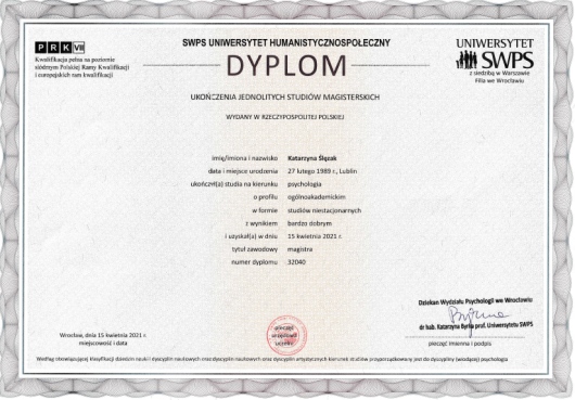 Spędziłam na terapii u Pani Katarzyny parę miesięcy. Spotkania bardzo mi pomogły, a podczas nich czułam się słuchana i rozumiana. Mimo, że spotkania były online to bardzo szybko poczułam się swobodnie; Pani Katarzyna tworzy przyjazną i otwartą atmosferę na spotkaniach.