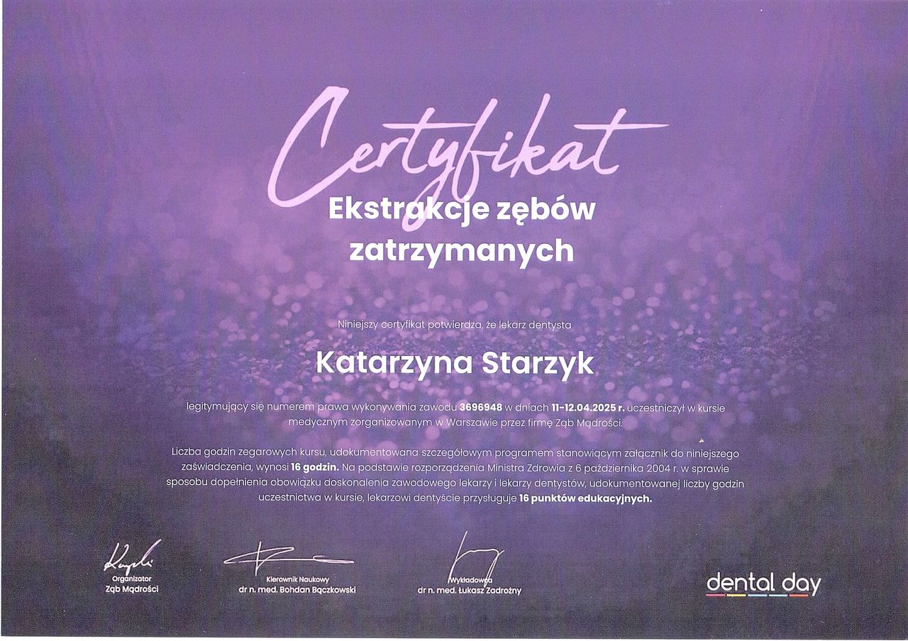 Dr Katarzyna Starzyk to lekarz z prawdziwym podejściem do pacjenta. Wszystko tłumaczy spokojnie i szczegółowo. Leczenie przebiegło bez stresu, a efekt przerósł moje oczekiwania – zęby wyglądają pięknie i naturalnie. Serdecznie polecam!